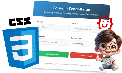 Mereka akan belajar membuat navbar, card, form, dan grid layout responsif.